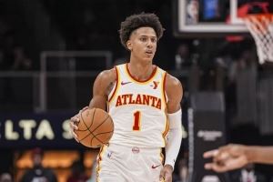 杰伦·约翰逊上季肩伤报销前,是这个时代的完美策应锋:全能身手、无短板、适配任何队友,正逼近生涯首次全明星。他会传球、能接球投、快攻飞天、篮板狂魔且多位置防守,而且没有明显到足以给队友加负担的弱点。如果他有一手摆脱中投,再加一手背打,简直可以去问火箭: