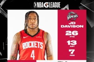 - Die π!休斯顿雨姐JD·戴维森统治G联盟 狂砍26分7板13助!